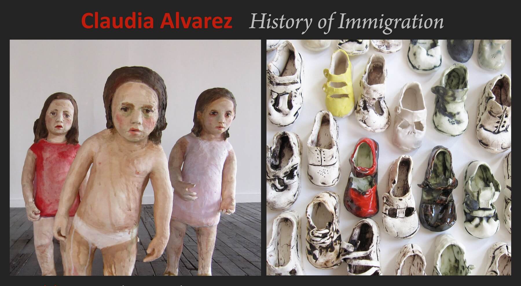Known for her almost life-size ceramic sculptures of children and emotive figurative paintings, artist Claudia Alvarez explores her own thoughts on immigration and the human condition in History of Immigration. Alvarez, who immigrated to California with her family at age three, will show many works that have never been seen by the Omaha community before, like her ceramic “Shoes,” an array of single child’s shoes installed throughout the gallery, alongn with other ceramic and watercolor pieces utilizing the youth figure. “The exhibition is not an attempt to describe, explain, or tell the story of the history of immigration, rather its intention is to open a more intimate dialogue to question, respond to, and re‐look at immigration in groups of people throughout the world,” Alvarez said. The artist spent most of her life in California until she came to Omaha for a residency at Bemis Center in 2005; she now splits her time between Omaha and New York City.