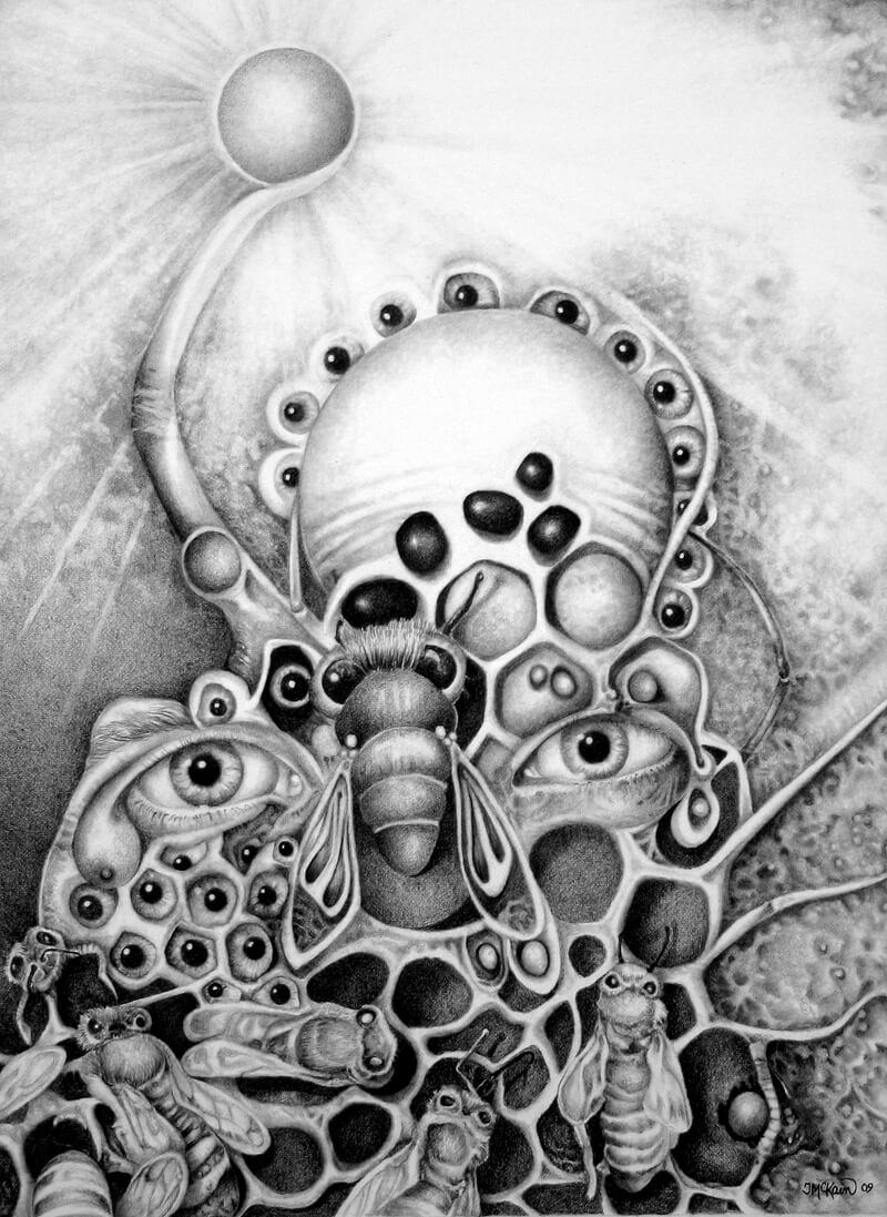 Omaha-based artist Janelle McKain’s drawing “Hive of Perception” was exhibited in THE SOCIETY FOR ART OF IMAGINATION, an international curated show featuring 58 artists from 22 countries at Phantasten Museum Wien in Vienna. This month, her surreal work is being featured in CADAVRE EXQUIS, Expanded (“Exquisite Corpse”), a curated show at Kulter Gallery in Amsterdam, featuring work by international artists of the collaborative movement where artists build on each other’s work. McKain’s art was also featured in the May issue of CATAPULT, an art magazine out of Louisville, Kentucky. Surrealvisions.com.