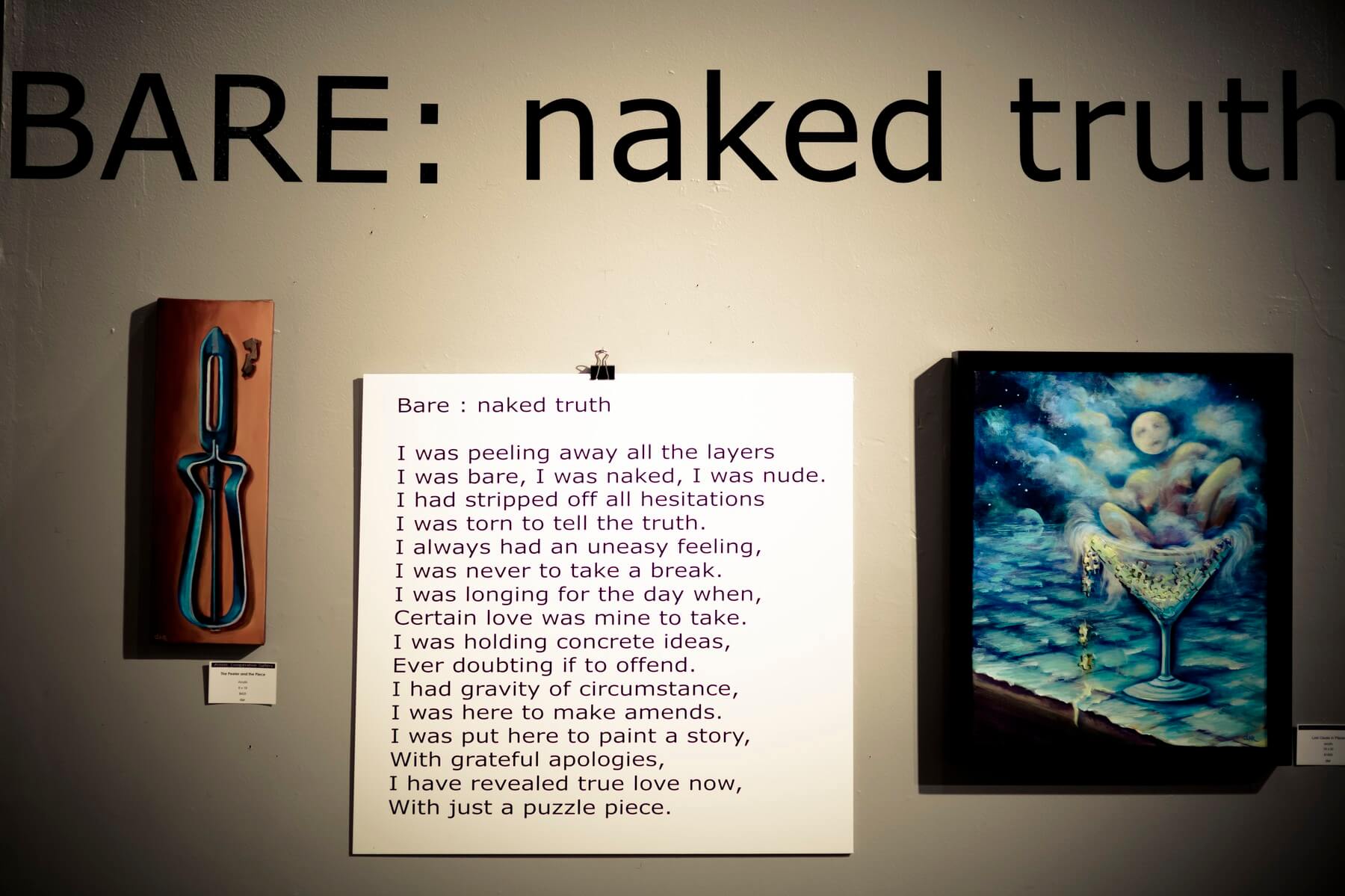For the last year, artists Travis Apel, Lori Elliott-Barlte and Dar Vande Voort have been creating work on the theme of the nude figure. The result, bare: NAKED TRUTH, is atypical for the gallery that usual exhibits concurrent solo exhibitions. Via his steel sculpture, Apel used the figure as metaphor, each piece taking on deep psychological intent on universal human themes. Elliott-Bartle explored themes of loss, grief, fear, intimacy and joy with her figurative oil paintings; and her own vulnerability with a series of self-portraits. Vande Voort, known for her paintings using puzzle pieces for texture, approached the figure surrealistically, placing nudes in dreamlike atmospheres. Visit thereader.com for an in-depth review of this exhibit that also includes new pieces created by other Cooperative member artists related to the nude theme.