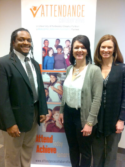UNO launched the Attendance Collaborative in 2009 with funding from Building Brighter Futures as a vehicle to study the problem of high absenteeism and to come up with a pilot program for improving attendance in Douglas and Sarpy county schools. In addition to Liwaru, the team includes Sarah Moore who focuses on middle schools and Nikole Roach at the high school level. The success of local school districts is important to UNO. “The impact of graduation rates is so direct on the university’s applicant pool that they wanted to be involved,” Liwaru said. “They were a neutral party, but still greatly affected by the issue.”