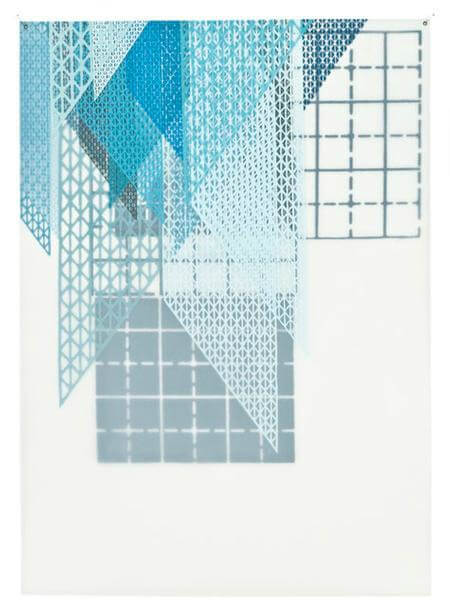 12. Amanda Knowles’ “Pinned IV,” a screen print of an intricate graphic pattern of shades of blue and gray…a sharp contrast to the busy, heavily textured works surrounding it, this is a welcome relief so subtle sophistication.