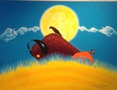 “I mainly use acrylic paint to present subjects like buffalo, horses, native hunters and other aspects of native life. I go back in my Native American background and bring back the history that I was told,” he said.