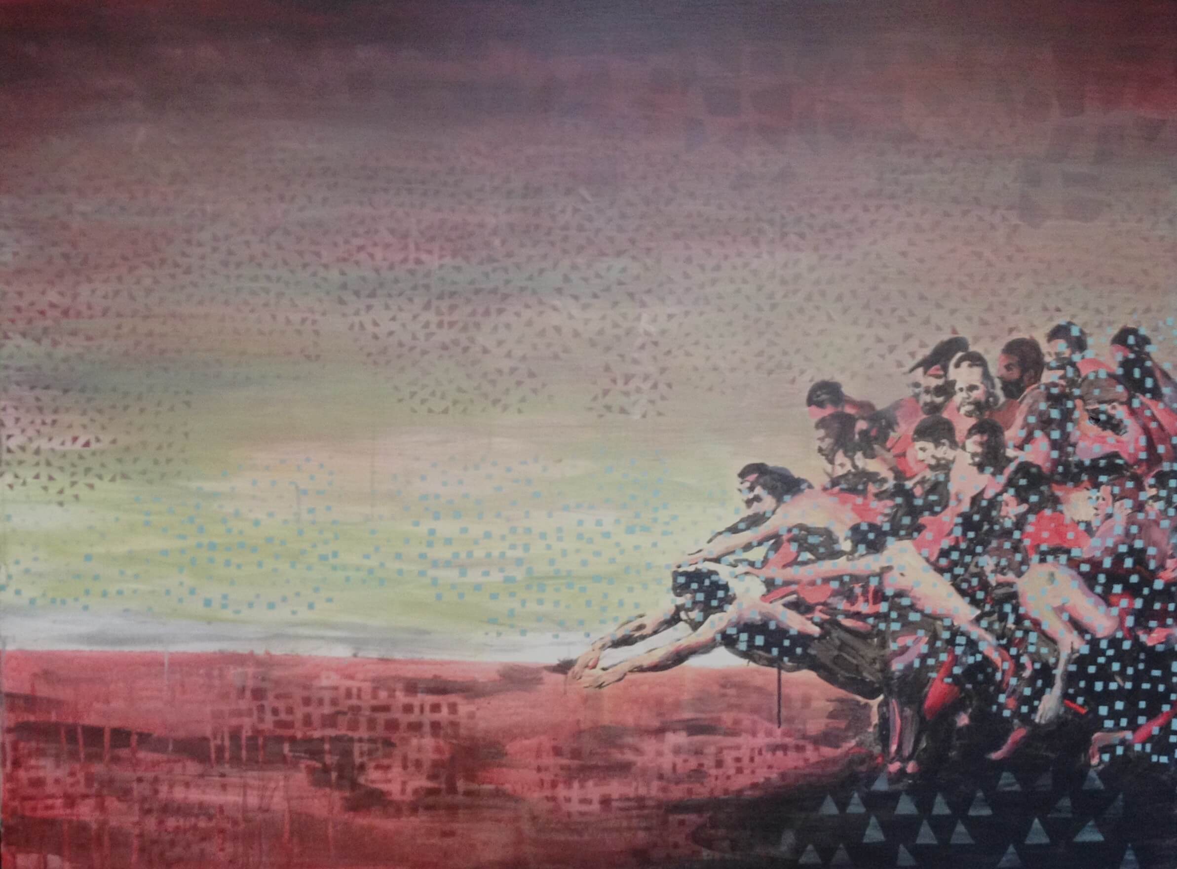 Ballarin’s paintings explore the themes of travel, isolation and change through simple, sometimes primal subject matter in a style that leaves much to viewer interpretation and engagement.