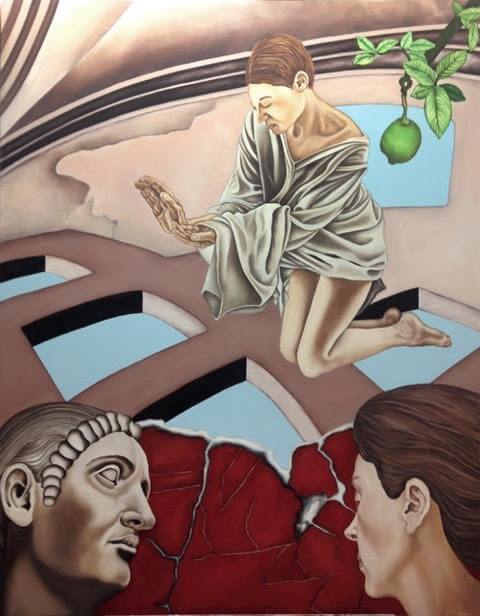 An exhibition of Barbara Simcoe’s paintings, drawings and digital photographs has opened at the Sunderland Gallery in the Saint Cecilia Cultural Center at 701 North 40th Street. Titled Threshold, the show reflects Simcoes’ ongoing interest in travel and architecture, often in exotic locations with vibrant mythical and cultural references. “I continue to be interested in gesture, dynamic positioning with undertones of tenderness and sometimes power,” she said. ‘A contradiction, but nonetheless the settings are mostly from travel, a lot of architectural fragmentation, sky and water, openings, liminal spaces. Hence, the title of the show, Threshold.” The figurative imagery Simcoe favors is exclusively of women, and it is these feminine archetypes that she is most interested, particularly as “vessels of creativity, as intercessor, as of the earth, as mother, as primal aspect of the feminine/masculine dichotomy, as the complement of masculine divinity. These are the subtexts of my work.” That said, her works are characterized by a sublime complexity and formality. She may use familiar iconic imagery, but nevertheless the resulting montages are Simcoe’s daydreams and consequent creations. Which is to say, their mythos is personal rather than universal. They may remain a mystery to the viewer, and no doubt one of wonder to the artist, but their very existence encourages one to create their own cosmos out of the chaos that surrounds us, not unlike that of Simcoe herself in Threshold, which continues till Oct. 23.