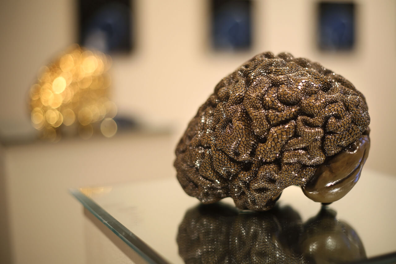 Turning physically inward, Bri Murphy, gallery Director at the Lux Center for the Arts in Lincoln, offers a more visceral, but no less personal, series of 2D, 3D, and video works, “the resulting dynamic [of which] operates in the space between the neurological the psychological disciplines.”