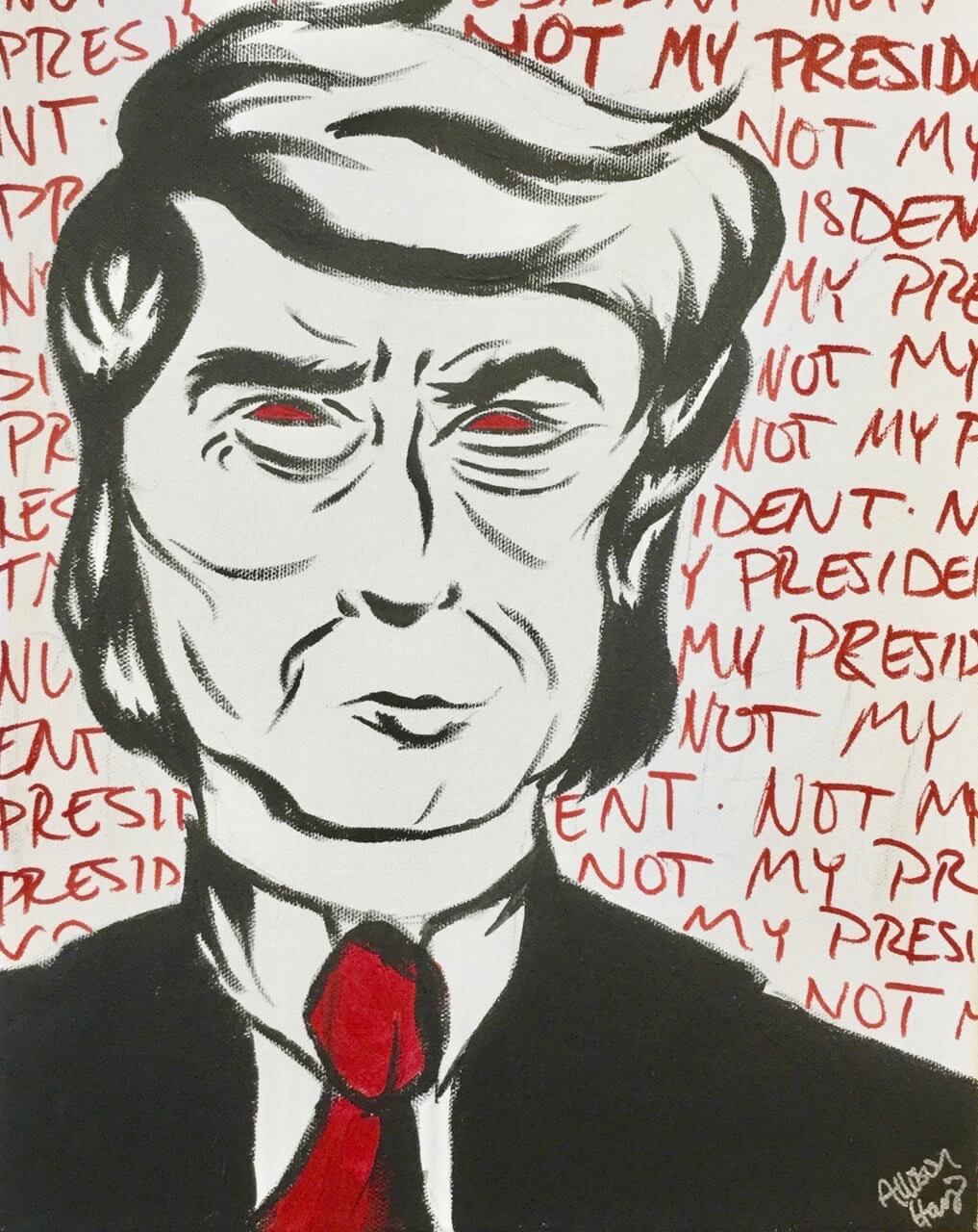 That may end thanks to the pending inauguration of a certain president elect this Jan. 20. As a point of fact it already has. Credit painter Robin Zagurski for curating the first show of its kind in the 1301 Gallery of the Hot Shops Art Center, currently on view till Jan. 29.