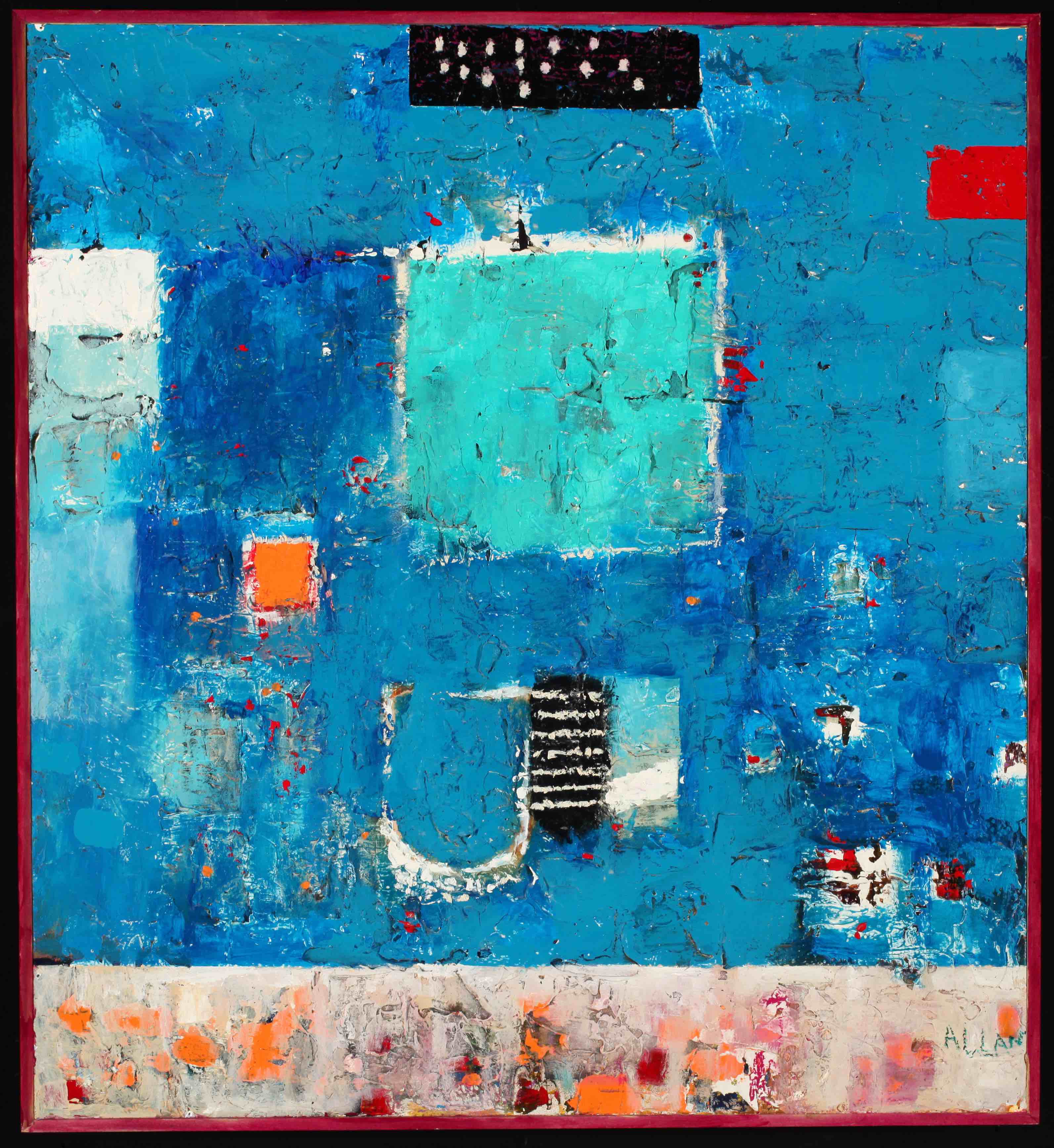 Although he starts with a plan, he says, he has learned with experience to let his paintings become what they need to. Allan’s palette delves deep into the soul and the chaos of life and brings forth a schematic of shape, pattern and color, often taking new direction from what the work had just become.