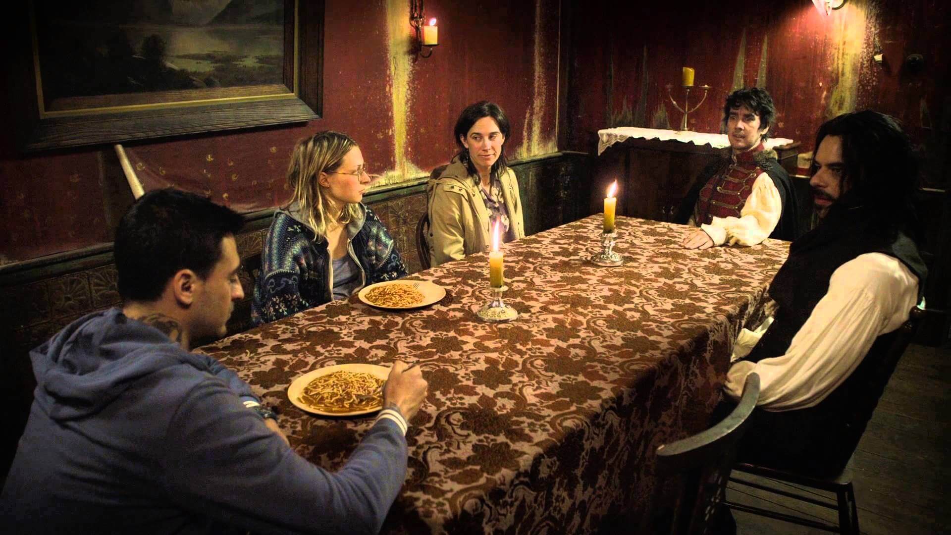 People eat a lot of disgusting shit in movies. And not just John Waters movies. From Indiana Jones to the guy who exploded in Se7en, choosing one stand-out, truly awful, big-screen meal is difficult to do. My solution? Choose a meal that’s bad in two different ways! Writer/director Taika Watiti’s What We Do in the Shadows is a brilliant bit of mockumentarying that should appear on far more “favorite comedies” lists than it currently does. And I check often. There’s a great scene where vampires use their low-level telepathy to screw with soon-to-be blood donors, convincing the meat-and-juice puppets that they are eating worms and not spaghetti. Here’s the thing, imagining worm slurping is gross. But seeing the canned noodles they’re actually eating isn’t much better. It’s a double-whammy of “not in my mouth.”