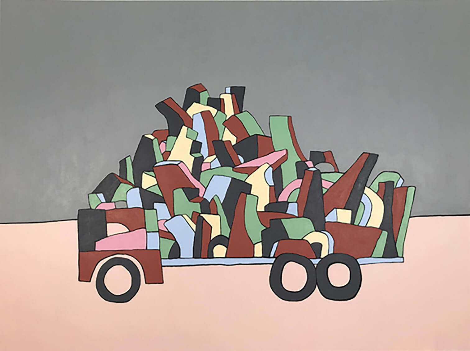 Himmelfarb is work in sculpture, painting, and printmaking brings together calligraphic symbols, abstracted figural forms, and colorful representational shapes. Whether simple or multi-layered, all are bound into a hieroglyph, totem, or picture of his often-pedestrian inspirations, such landscapes, maps, or trucks.