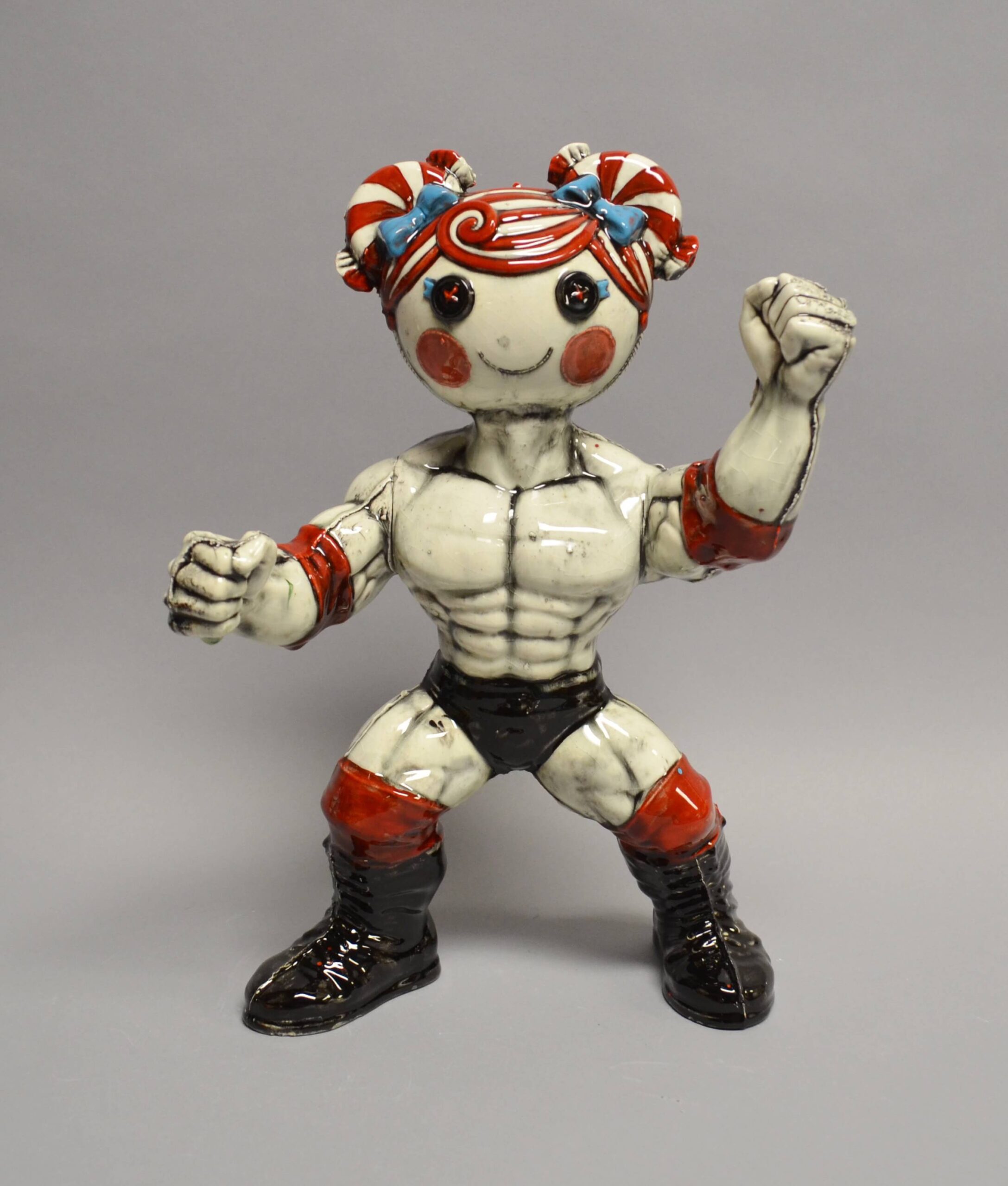 Cast in ceramic from salvaged toys and objects, the converted characters not only highlight the way our memories tend to blend into a feeling or experience but also illustrate an intersectionality that touches on our relationship with popular culture, the discarding of objects, the cycle of consumer culture and the disassembly of mythology.