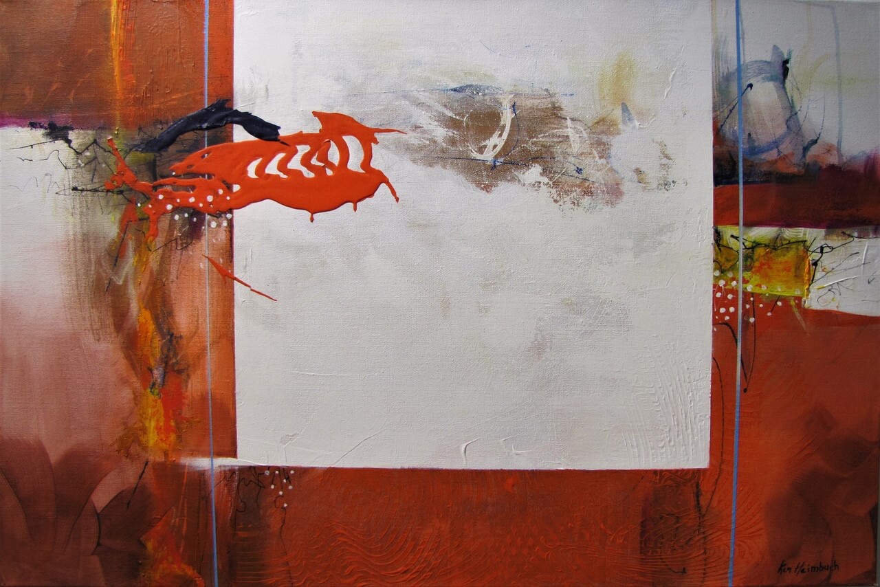 Even a new listener would recognize this quality in no time. The abstract paintings from Ken Heimbuch, now on view at midtown Omaha’s Connect Gallery, are good examples of how this economy of style applies to other arts as well.