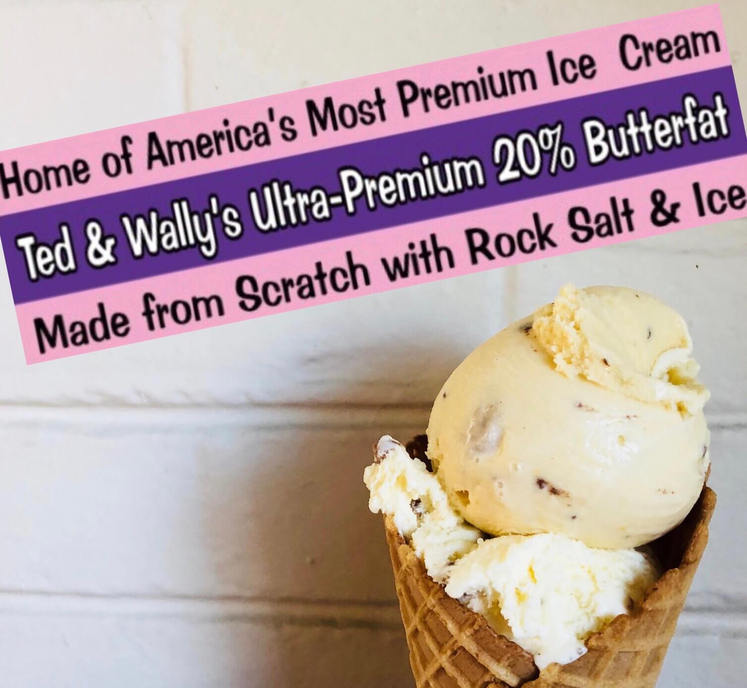As of this summer, Omaha’s Ted & Wally’s has hand-crafted and served more than 2,000 different flavors of ice cream. Each is comprised of cream, eggs, sugar and other ingredients. Then it’s tossed together with rock salt and ice in antique mixing machines. And out comes a new, possibly unique, flavor. It’s an old- fashioned process that made Ted & Wally’s ice cream shop one of the area’s most popular sweet tooth cures. Our ice cream is made with 20% butterfat, the most premium you can find in America.