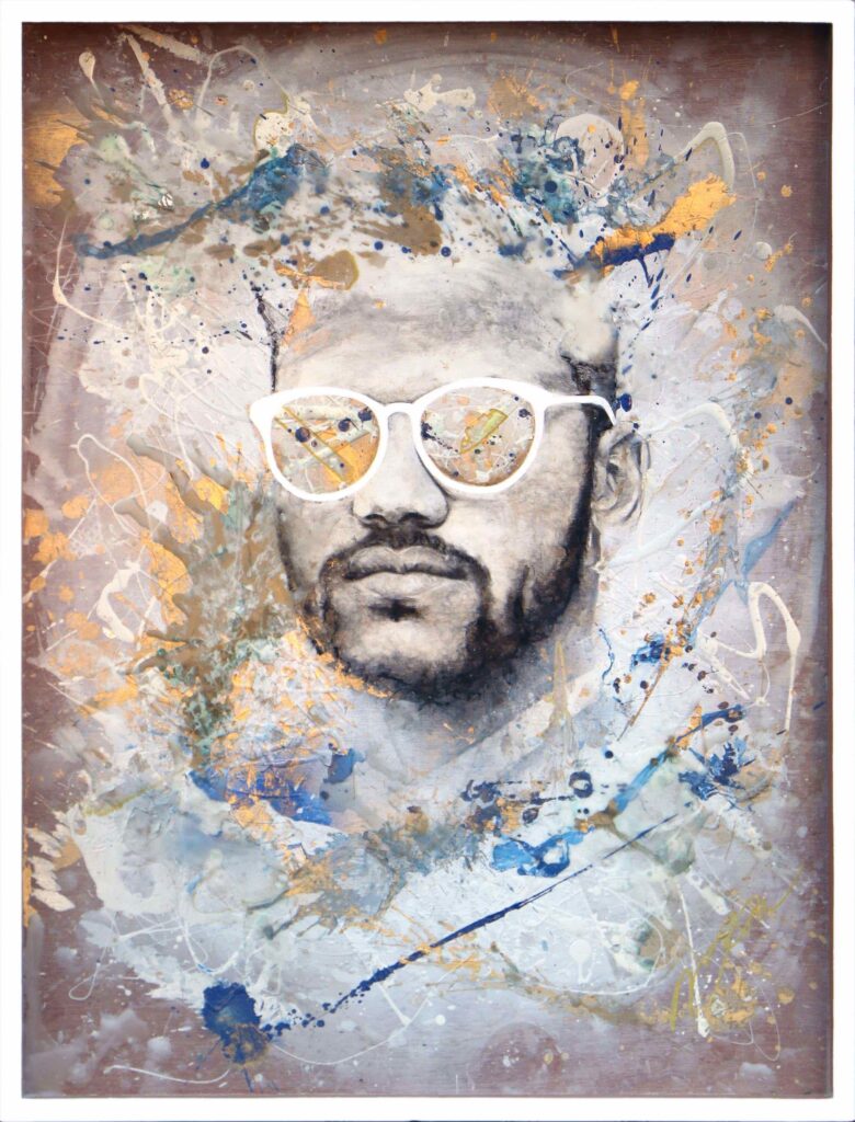Jeremy G. Bell is best known for his take on portraits in mediums of charcoal, acrylic, sharpie, oil paint and encaustic wax over wood. On occasion, he employs the use glitter to highlight his images.