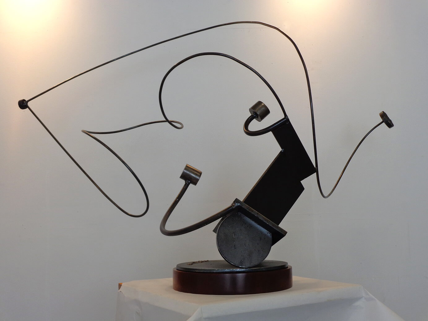 Utilizing elements of control to yield the expression of energy, Littleton Alston opts for steel to express his inspiration from the Industrial Age when “gesture and intent could be calibrated and shown in wheel and cog.” His pedestal-top sculptures employ graceful lines of steel that change direction at their intersections with small, cylindrical forms, and with titles such as “Galileo,” “Eclipse” and “Stella Luna,” it is not hard to see them describing the celestial paths of stars or satellites.