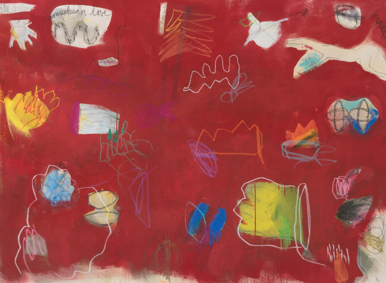 Often painting on raw canvas, paper, wood, metal and rubber, she devotes “physical and emotional” experiences “of being in and of the environment” to reveal an honest expression. This could lend to pinning cotton canvas to “the ground with heavy rocks”, spraying or dipping it in water while working in the elements may inspire the color palette or mark making.
