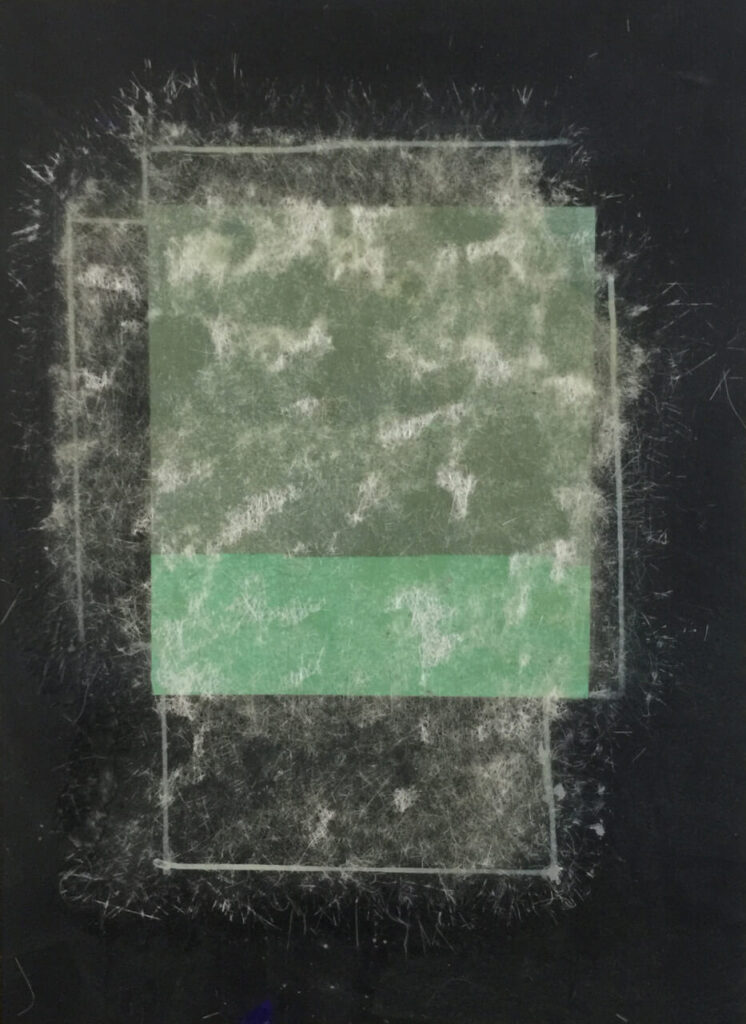 “Meditative, reflective, and above all, non-representational,” he said. The works are done in combinations of fiberglass, resin, beeswax and pencil on watercolor paper.