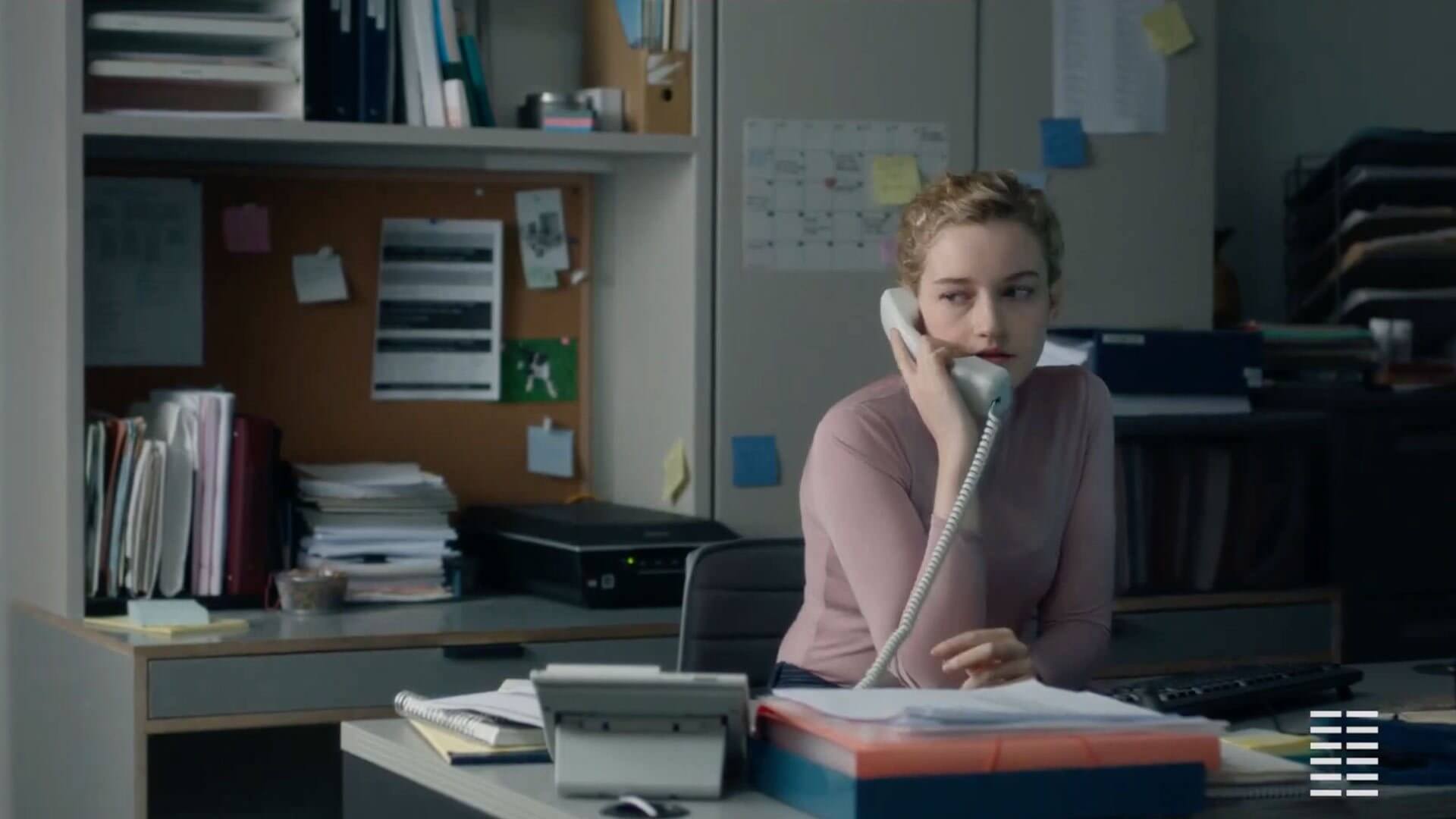 The film follows a day in the dreary life of Jane (Julia Garner in an almost entirely dialogue-free role). She is an entry-level assistant for an unnamed—and unseen—producer at a major Hollywood studio. First one to arrive at the office and last one to leave, Jane spends her day being scrutinized by her peers over mundane tasks. Whether it’s getting coffee, copying and binding scripts, or taking calls from angry ex-wives, so much of the film’s tension stems from anticipation that Jane will be criticized no matter what she does.