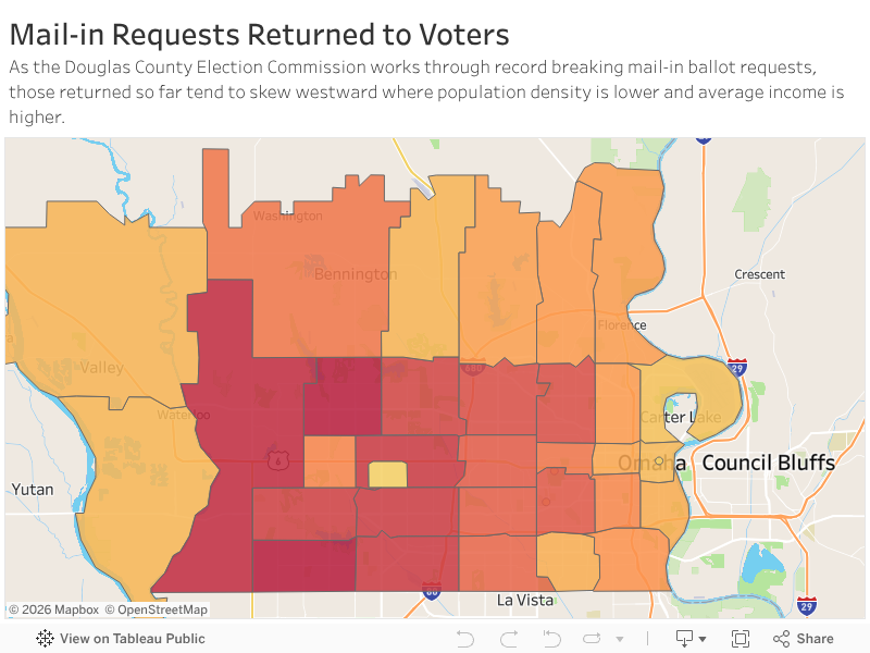 As more than 116,000 request mail-in ballots, data shows most are being returned to residents on the west side of Douglas County. The total requests far exceed the total turnout in any previous primary.