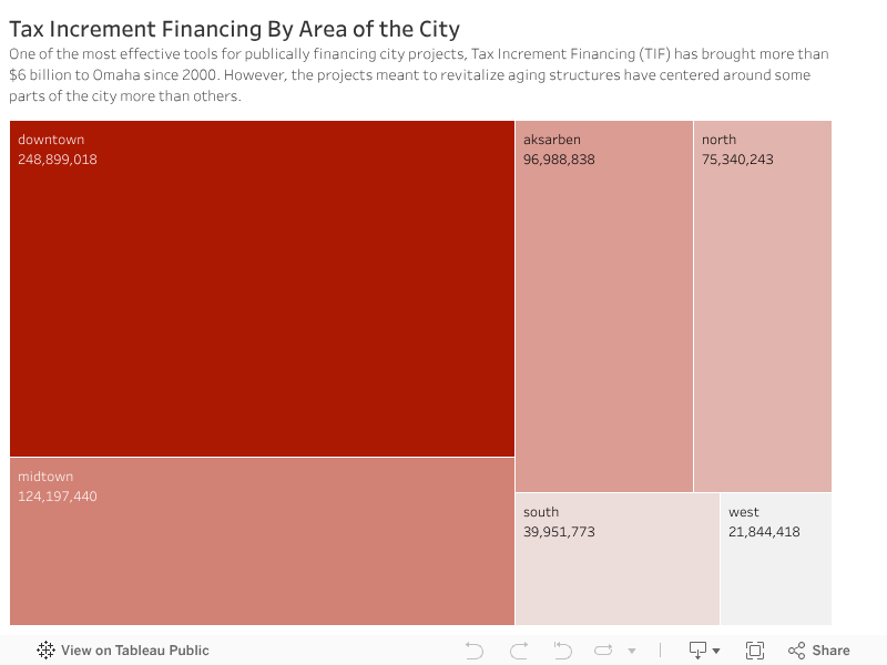 But that still pales in comparison to how much is spent in other sections of the city. Between 2000 and 2016, projects in Aksarben and Midtown each outpaced spending in North Omaha by about $20 million in tax increment financing.