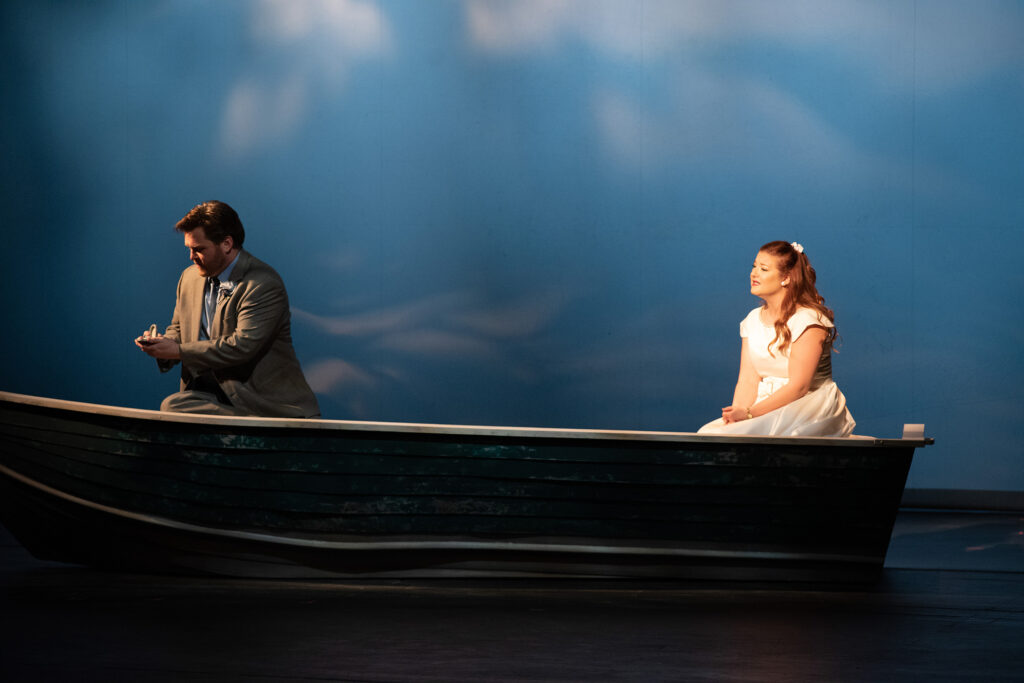 In between, Gjere and Carlson keep adding new dimensions to their performances with his “The Schmuel Song” and her “A Summer in Ohio” as her career struggles separate them. With Jim Boggess in the orchestra pit both conducting and playing piano, a five-member orchestra adds perfect accompaniment.