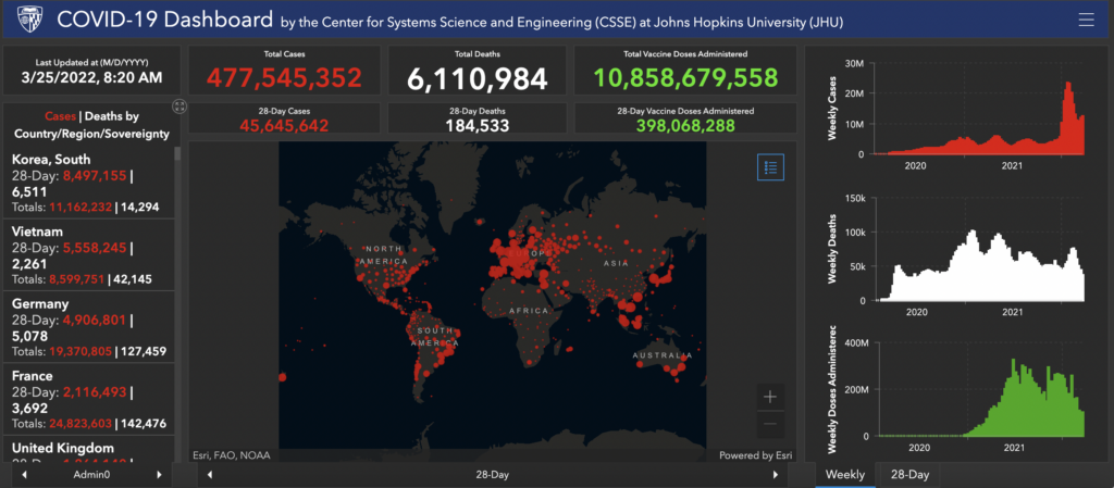 But if you’re sick (no pun intended) of our Christmas-colored COVID-19 graphics, you’re in luck: We’re swapping those out for a COVID-19 Dashboard from the Johns Hopkins University & Medicine Coronavirus Resource Center. Check ‘er out below.