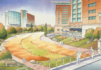 Four years later, University of Nebraska Medical Center, along with the City of Omaha, Papio-Missouri River Natural Resources District and the Nebraska Department of Roads, revisited the idea and estimated costs of construction and buying property to be between $17-20 million to keep Saddle Creek Road on its existing alignment, and $21-24 million on a new alignment.