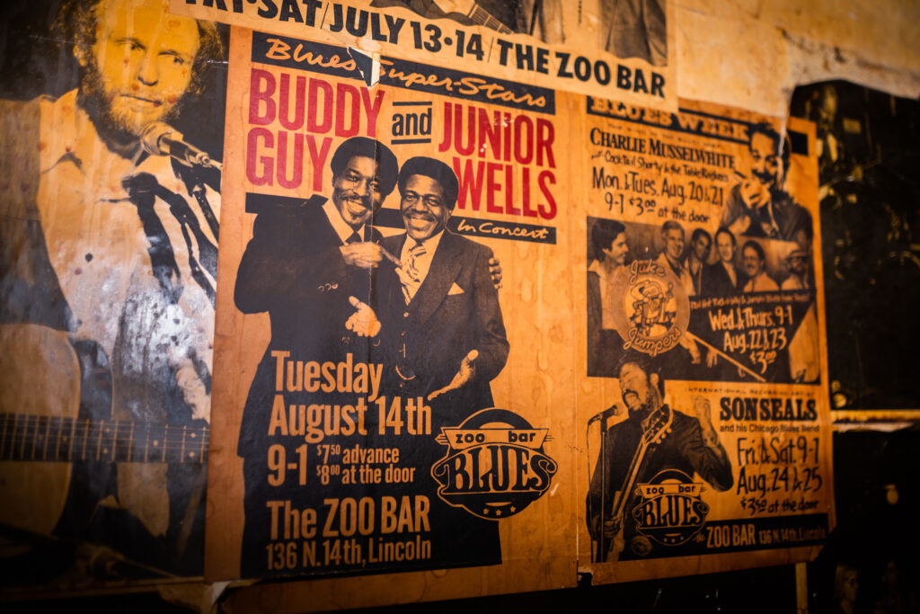 One of the many show posters that paper the walls of The Zoo in Lincoln. The Buddy Guy / Junior Wells poster represents the show that drew Watters to dig deep in his pockets to attend. Photo by Chris Bowling