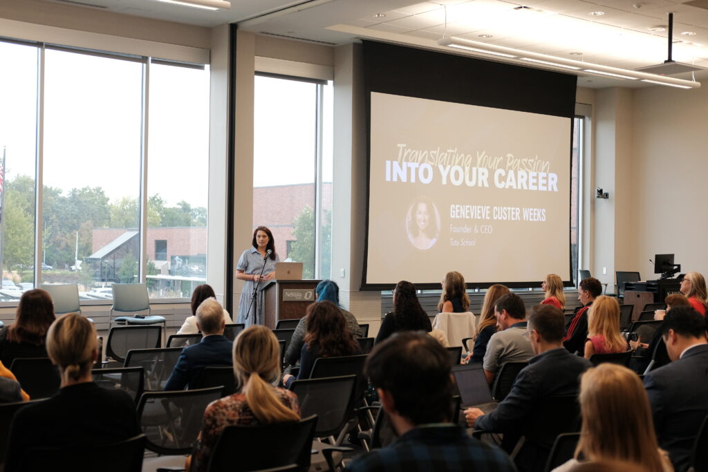 Custer Weeks knows that from experience. She originally intended to be a professional ballet dancer, but faced medical setbacks and rejections. During that time, Custer Weeks told a full conference room, she was developing the fundamentals of entrepreneurship. She sorted them into five buckets: knowing your ‘why,’ being creative, practicing discipline, cultivating resilience and acting boldly.