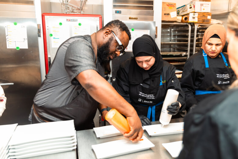 He has said “no” many times to prospective investors wanting him to open a restaurant as he wants to complete his community-based vision first. He’s ever more committed to that vision now that a number of immigrants and refugees have gone through his training program. He’s afraid that if he opened a restaurant it would take his focus away from the foundation’s work.