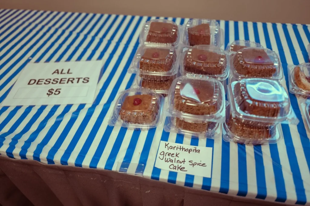 And at the Greek fish fry, almost every diner seems to be enjoying at least one or two selections from the many tables of those homemade desserts.