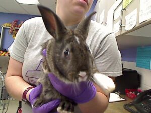 This is Pancake, a short-haired domestic mix rabbit. She weighs 3 pounds, but we don’t know how old she is. If you think Pancake would be a good fit for your family, click here to learn more about how to adopt her.