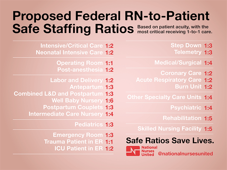 For medical/surgical units, NNU’s optimal ratio is four patients per nurse.