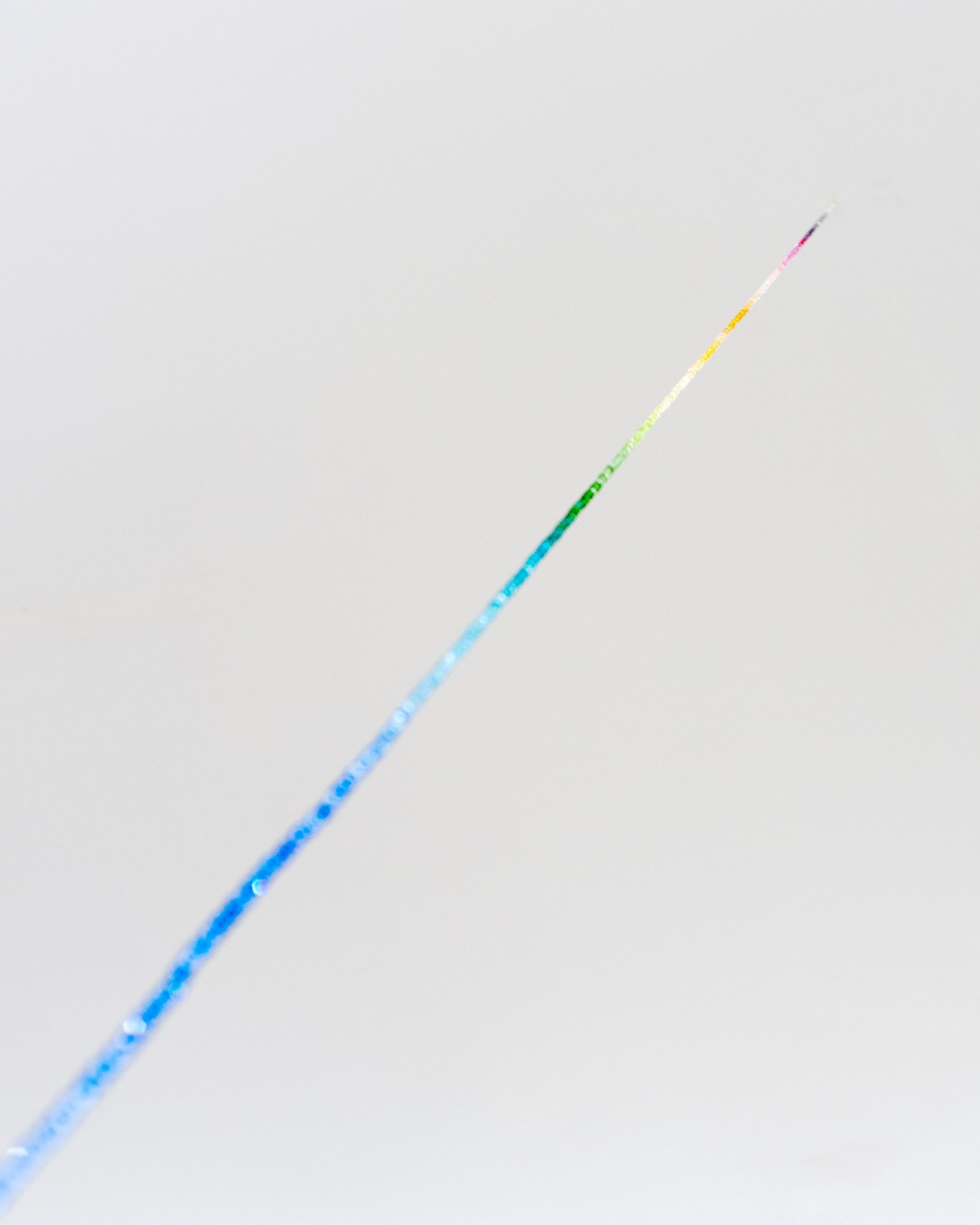 “Most of the works speak about light and space, in one form or another. The drawings are filled with rainbows, and elusive forms,” Laidig said. “They seem to depict flashes, splintered moments caught, a glint within a suspended droplet of water.”