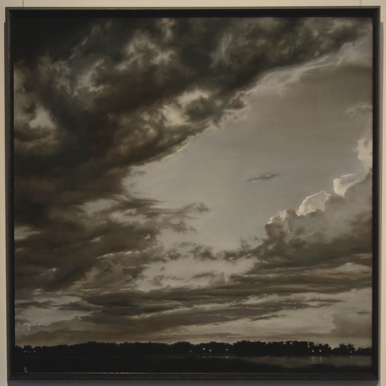 Jennifer Homan has been showing her work professional since about 2004. She is an educator and environmentalist, and a member of the prestigious Pastel Society of America. Since it is pastel on panel, the work lacks the sculptural effects that Holoun gets from his paint. This does not deter from the intense depth she gets in her work. Her detailed pastel rendering of cloud edges and storm banks create statuesque skyscapes of broiling thunderstorms and puffy, dulcet clouds.